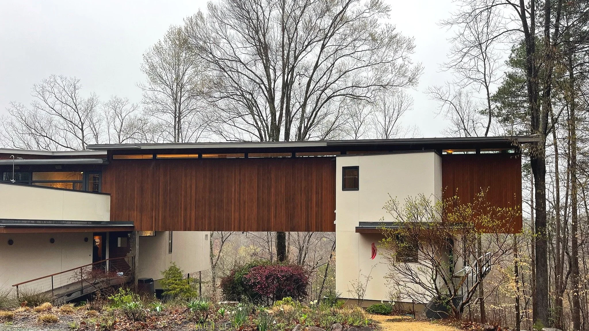 Een opmerkelijke kunstwoning in het bosrijke North Carolina.